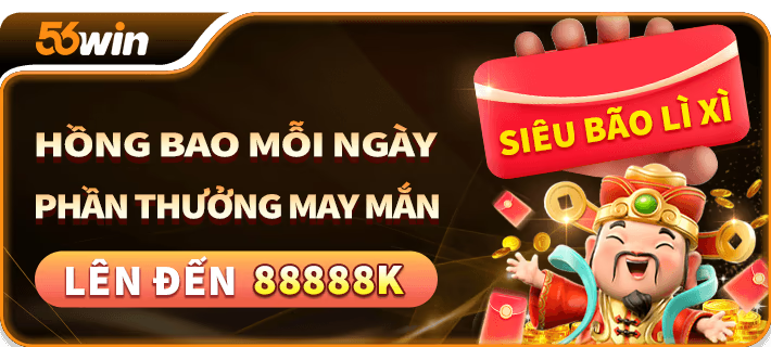 Hàng ngày, nhà cái 56Wimcom sẽ tự động phát thưởng hồng bao may mắn với giá trị lên tới 88888K, sự kiện không giới hạn thời gian.